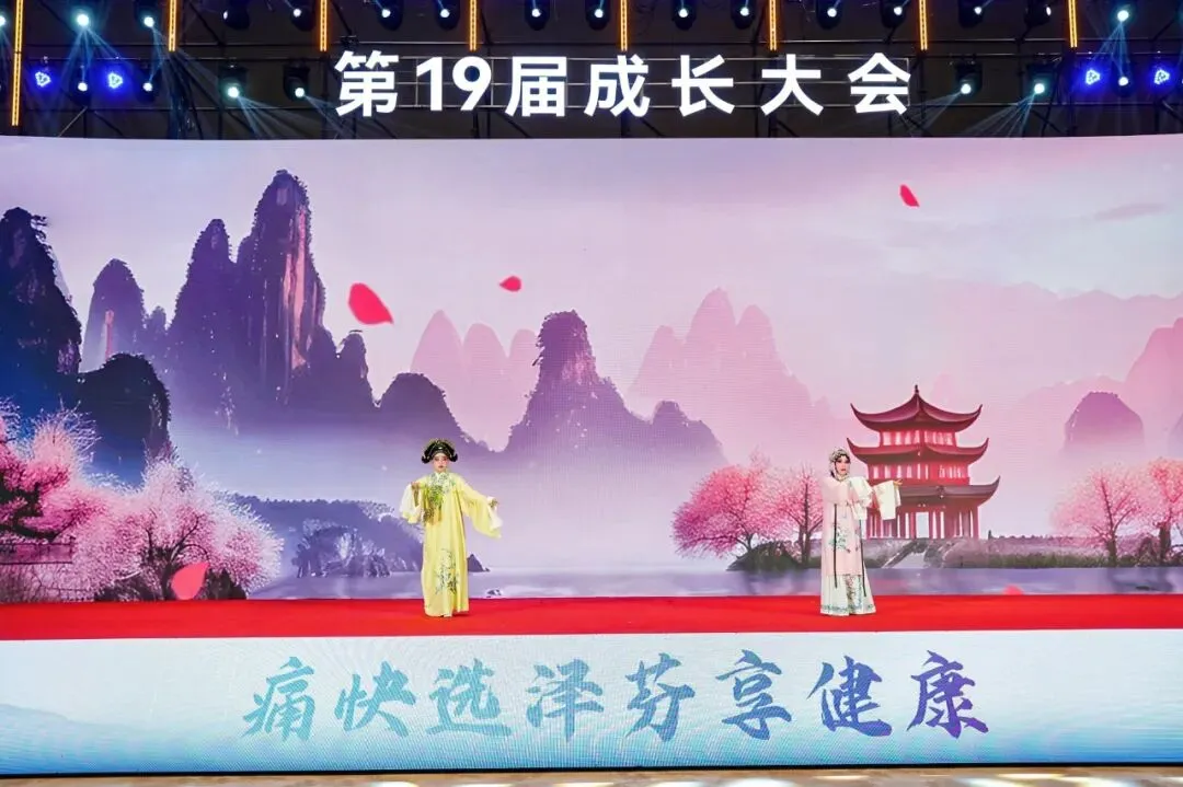 本次午宴不仅有工商签约的热血时刻,更有文化与情感的深度交融。现场精心安排了昆曲《牡丹亭》经典片段表演,致敬丽水与汤显祖的文化渊源,也呼应了苏州四药“以匠心做产品,以深情待伙伴”的品牌理念。《请到蒙古来》《歌舞伴万疆》等节目轮番上演,在激昂旋律与深情演绎中传递家国情怀与行业担当。